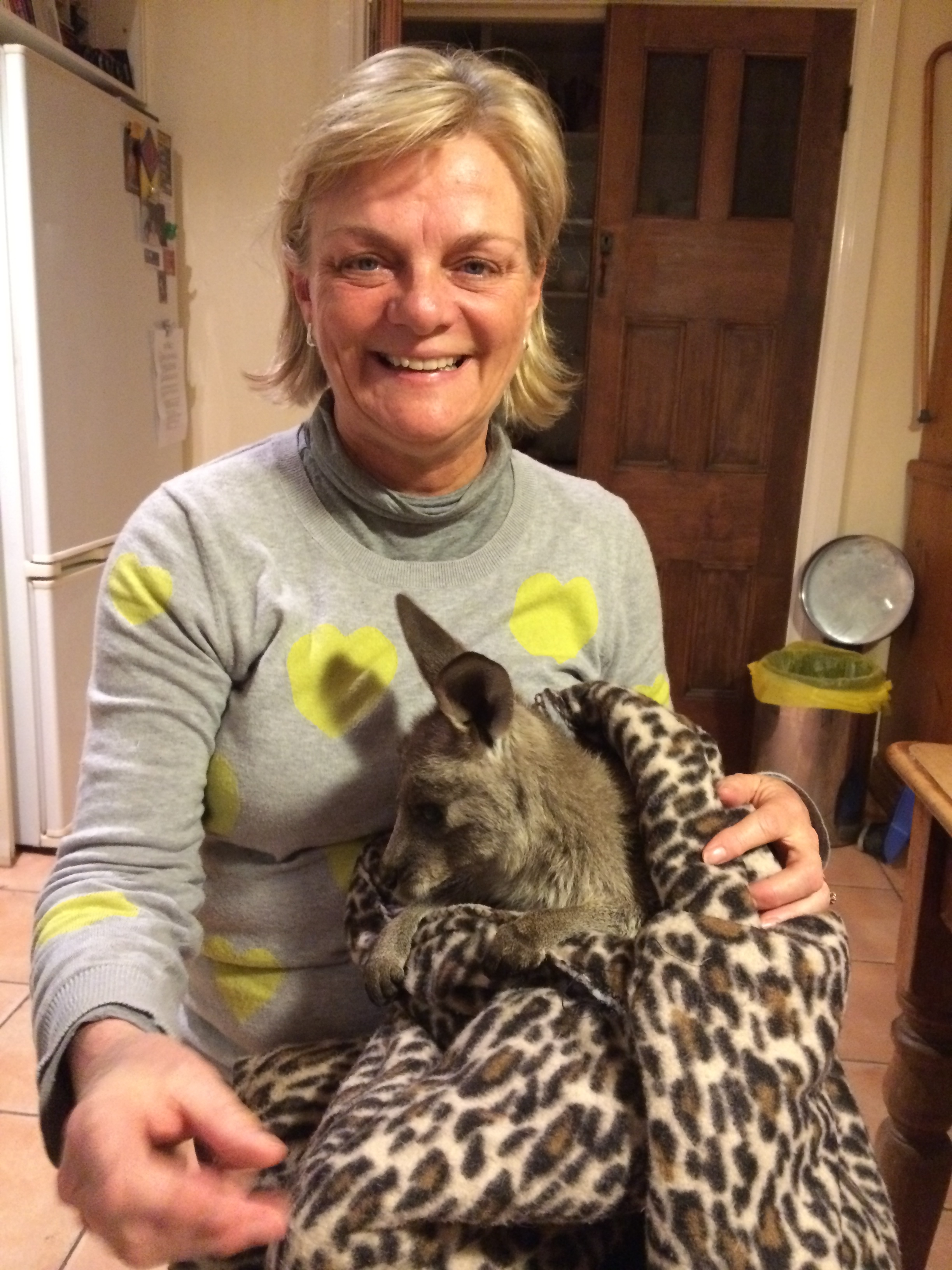 Part of the fun of living in the bush is the unexpected things that happen. I took the dogs to the vet for their annual vaccinations and as i was about to leave was asked did I know anyone who wanted a baby joey? Are you kidding?? The little fella’s mum had been hit by a car and killed, and a lady had brought him into the vet that morning after rescuing him out of the poor mum’s pouch. I said that I just might know someone and they showed him to me. How can you refuse a face like that??