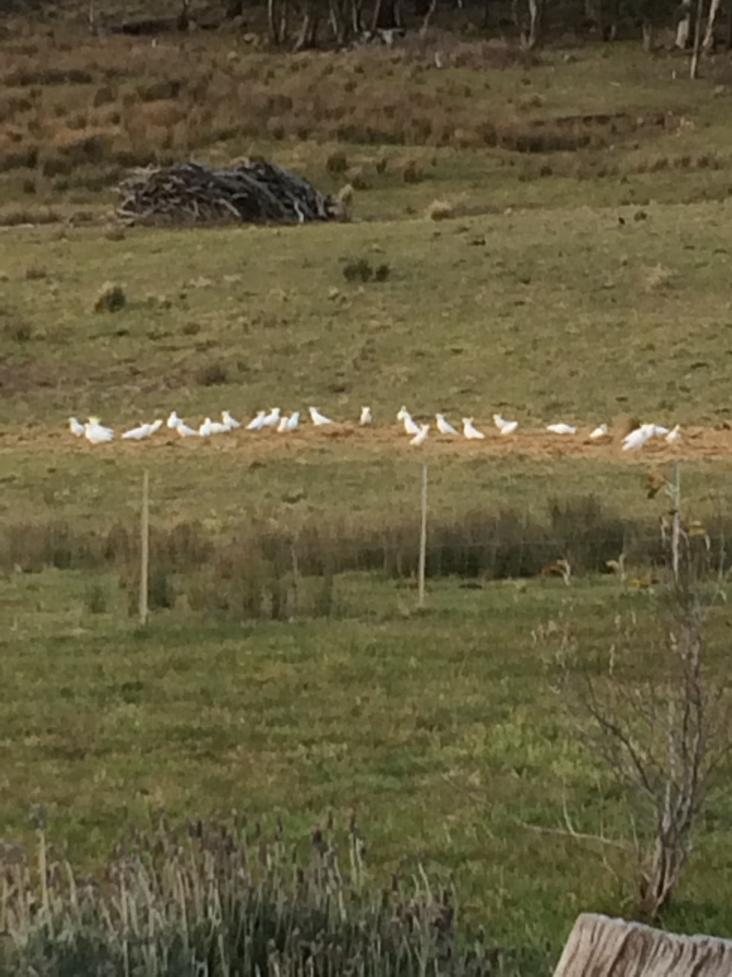 Other things that have tried my patience this last week are the cockatoos feasting on the precious hay I bought earlier in the year for my cattle. In February this year we were in drought and I bought 24 round bales of wheaten hay to feed my cows so that they have feed towards the end of the winter months and into early spring as the grass gets scarcer. Its full of nutrition, unlike ordinary bales of hay that just fill them up and get them by till summer. Well! The cows love it but so do all the damn birds!! We have always just put the bale on its side and rolled it out down a slope in the past but this hay is too precious to do that to and after doing it with the first bale I realised my mistake. After the girls had a good munch on it and pooed on it and sat on it and generally destroyed whatever was left, the cockatoos, galahs and rosellas came down and had a lovely feast on the rest of it!!